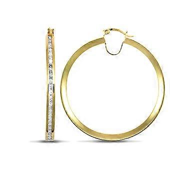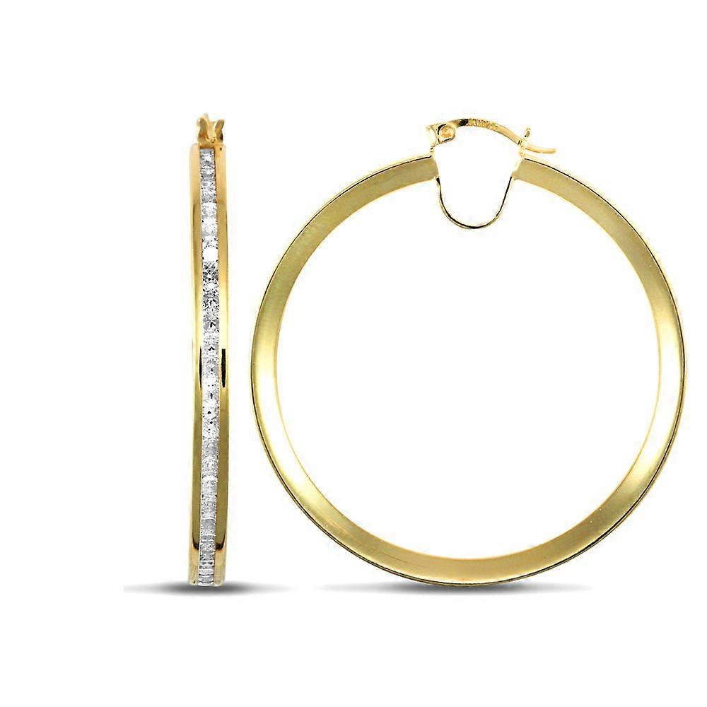 Jewelco London Ladies 9ct Yellow Gold White Round Brilliant Cubic Zirconia Eternity 4mm Hoop Earrings 47mm