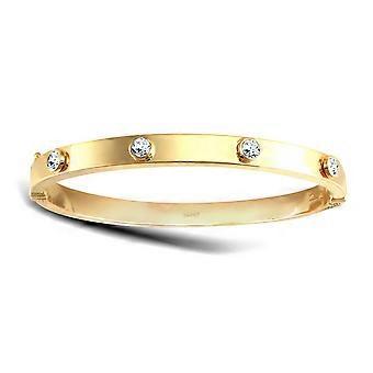 Jewelco London Ladies 9ct Yellow Gold White Round Brilliant Cubic Zirconia Hinged Square Tube Eternity Bangle Bracelet