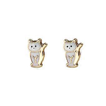 Jewelco London Ladies 9ct Yellow Gold Enamel Cat Kitten Stud Earrings