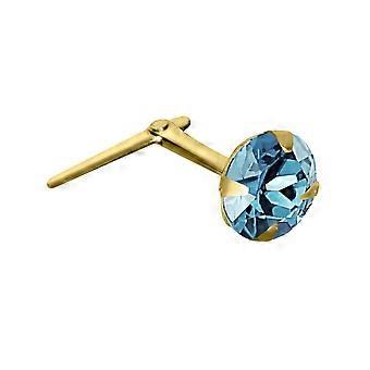 Jewelco London Ladies 9ct Yellow Gold Aqua Blue Round Crystal Solitaire Claw Set Andralok Hinged Nose Stud 4mm