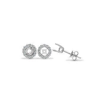 Jewelco London Solid 18ct White Gold Pave Set Round G SI1 0.32ct Diamond Semi-set Halo Mount Stud Earrings