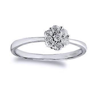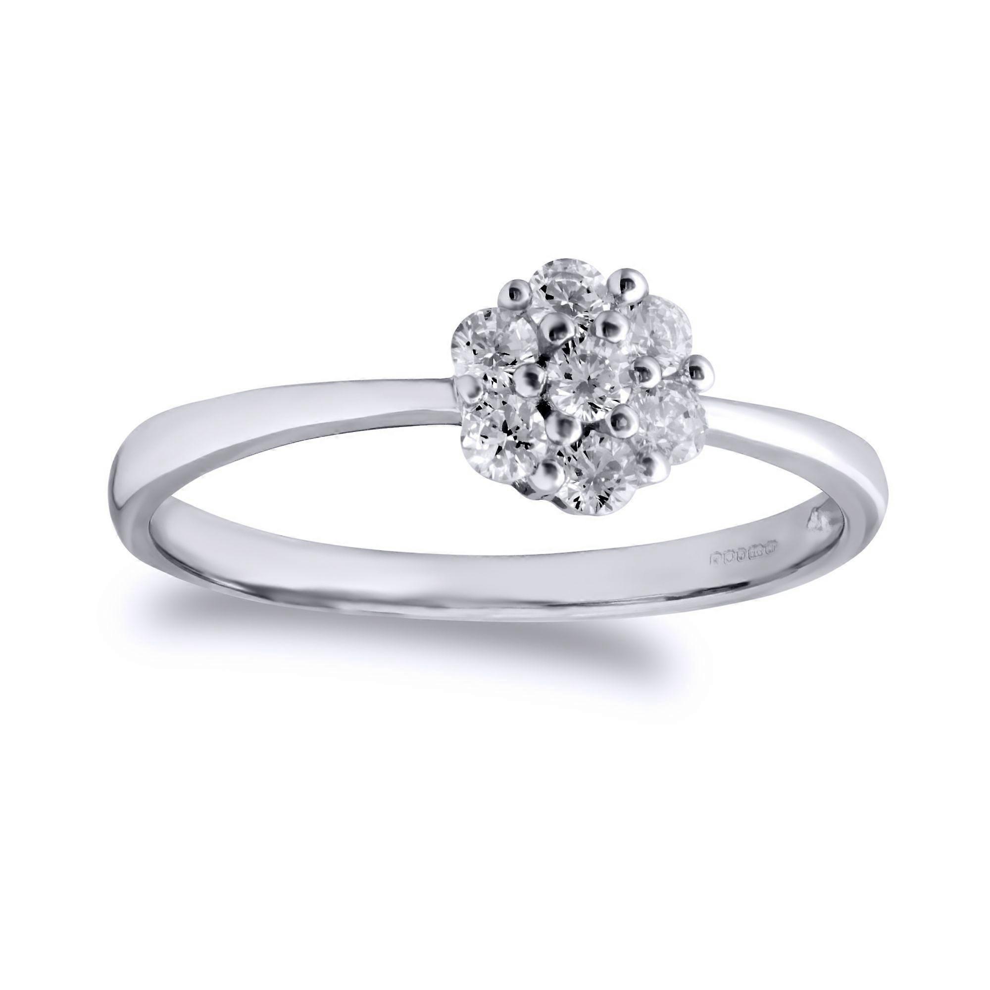 Jewelco London Solid 9ct White Gold White Round Brilliant Cubic Zirconia 7 Stone Cluster Engagement Ring