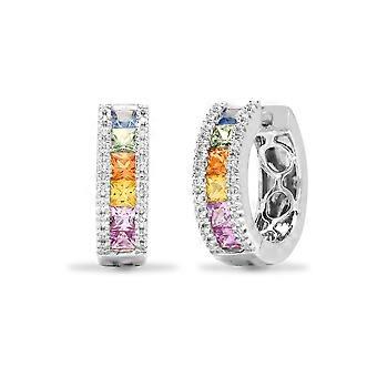 Jewelco London 18ct White Gold 4 Claw 0.16ct Diamond and Princess Rainbow 1.37ct Sapphire Eternity Hoop Earrings 15mm