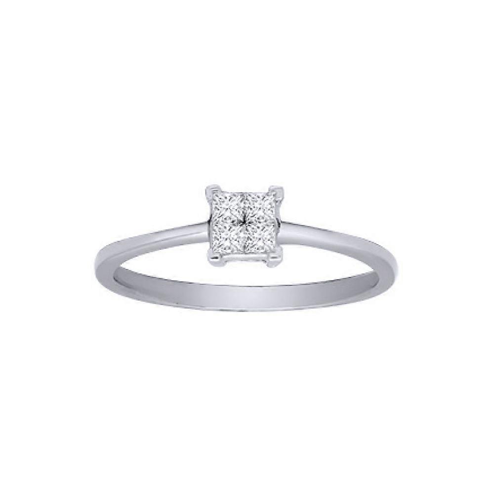 Jewelco London 18ct White Gold Tension Set Princess G VS 0.25ct Diamond 4 Stone Illusion Solitaire Ring 5mm
