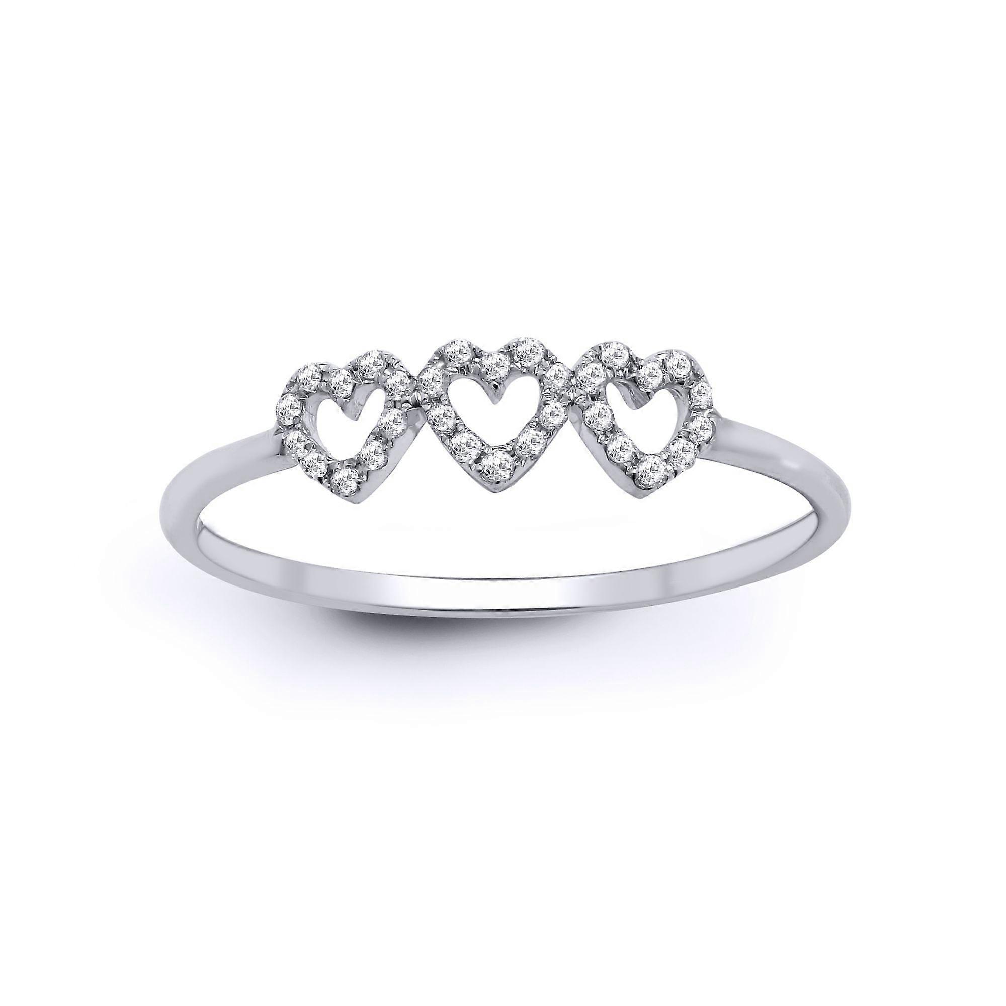 Jewelco London 18ct White Gold Pave Set Round G SI1 0.1ct Diamond Trilogy Love Heart Halo Trilogy Ring 4mm