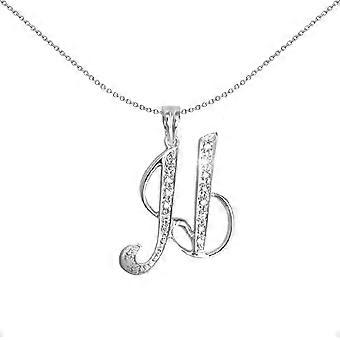 Jewelco London 9ct White Gold Pave Set Round G SI 0.09ct Diamond Identity Script Initial ID Charm Pendant Letter H