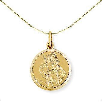 Jewelco London 9ct Yellow Gold Round St. Christopher Medallion Charm Pendant - 19x26mm