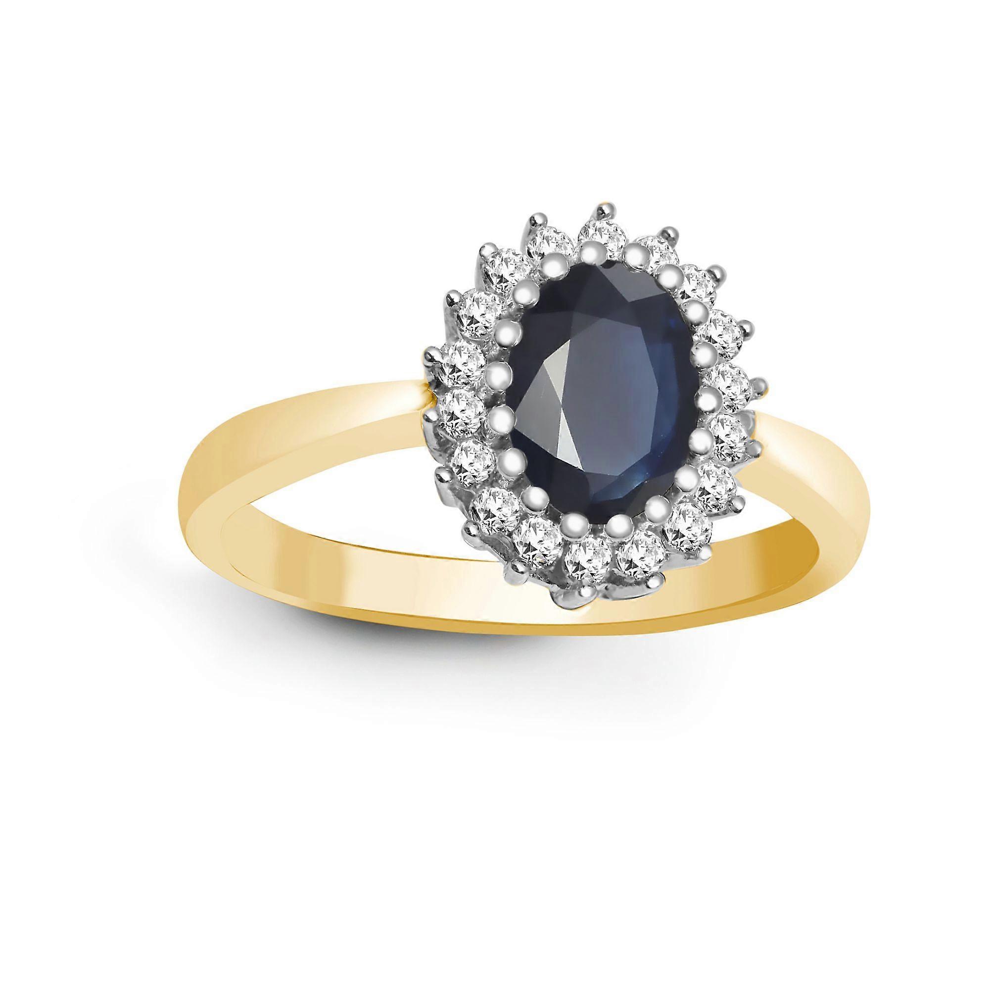 Jewelco London 9ct Gold H I2 0.23ct Diamond and Oval Blue 1.1ct Sapphire Classic Royal Cluster Ring 11mm