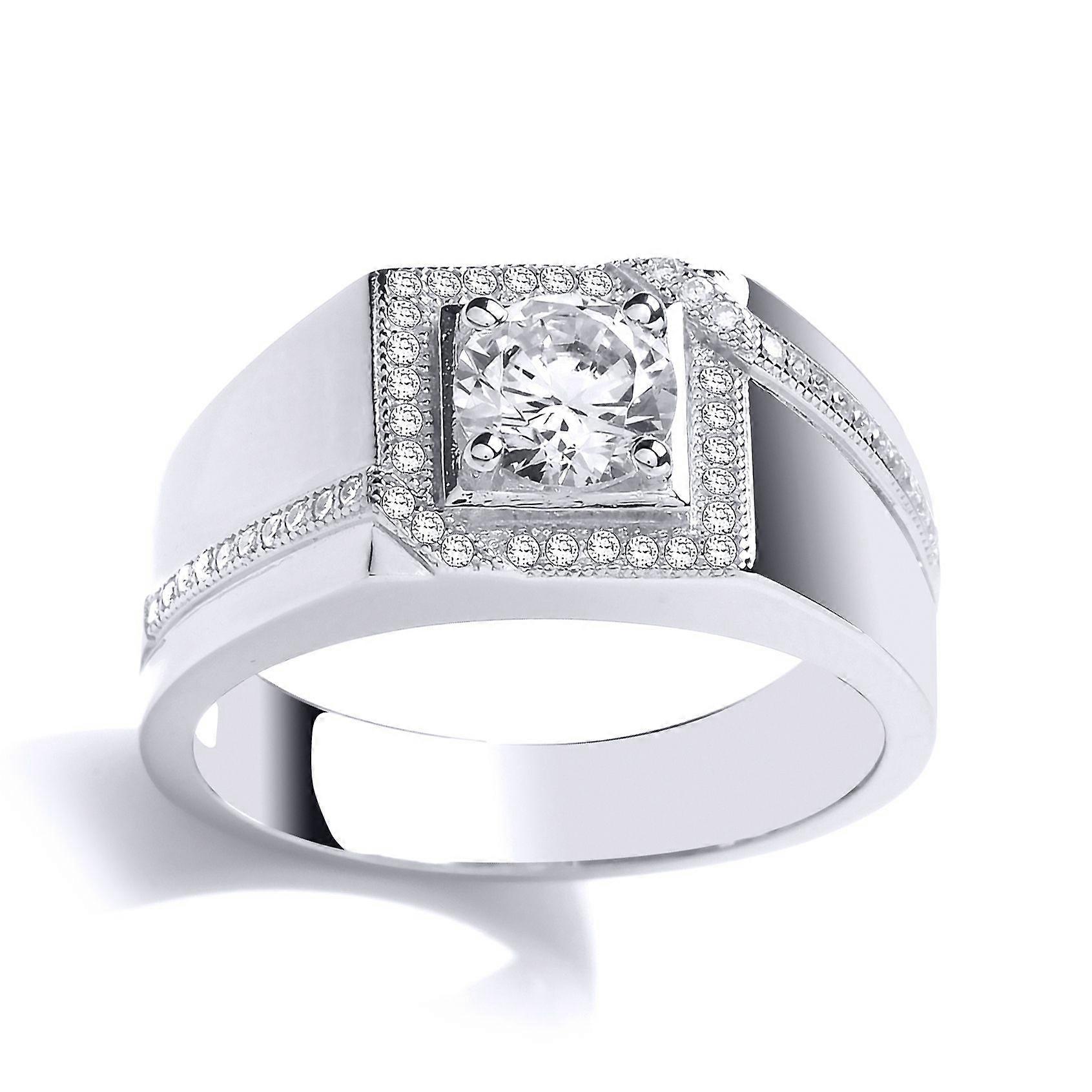 Jewelco London Mens Sterling Silver Cubic Zirconia Picture Frame Solitaire Signet Ring