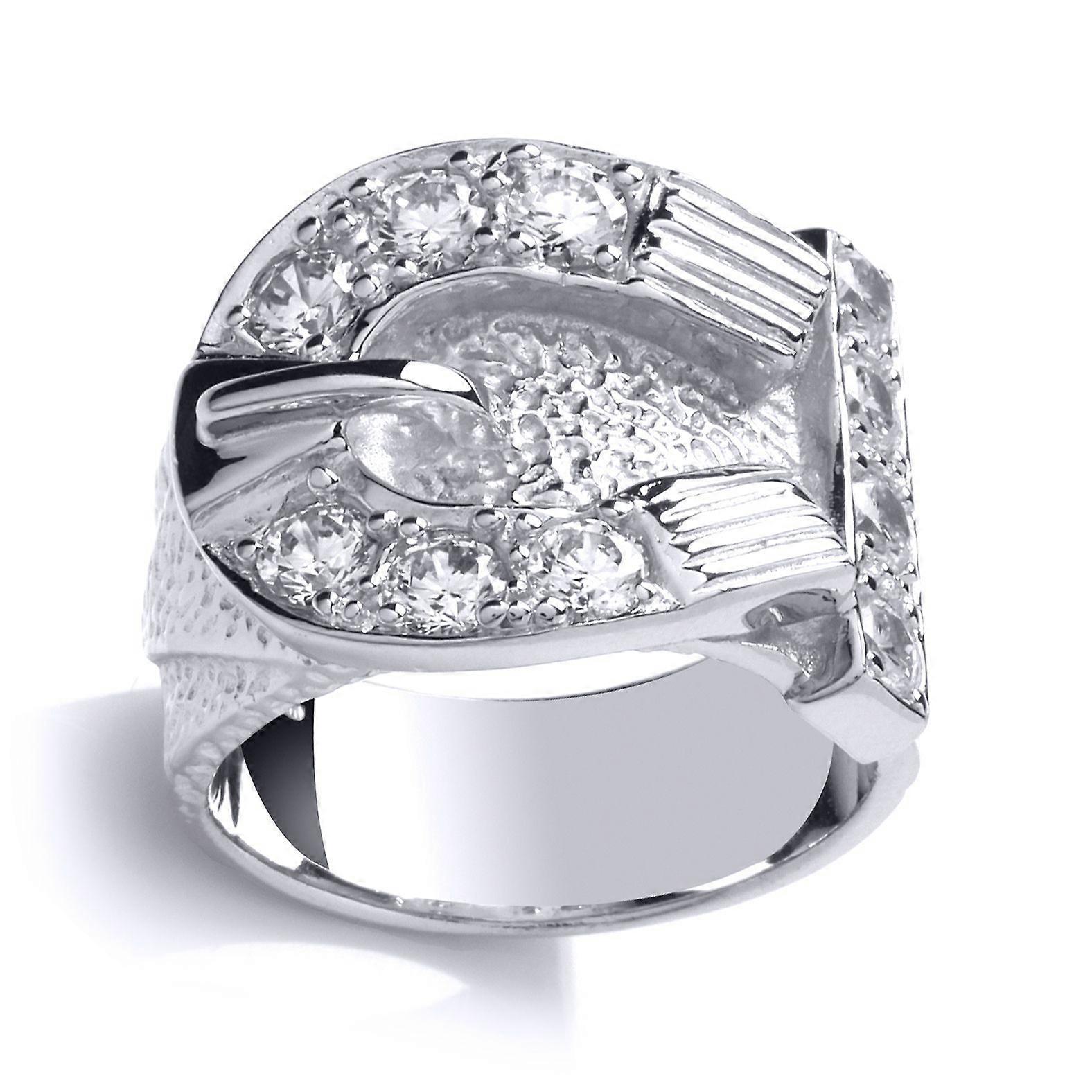 Jewelco London Mens Sterling Silver Cubic Zirconia Hammered Belt Buckle Signet Ring