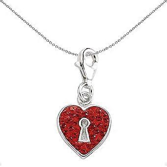 Jewelco London Unisex Sterling Silver Red Crystal Love Heart Padlock Lobster Clasp Link Charm