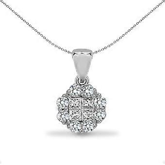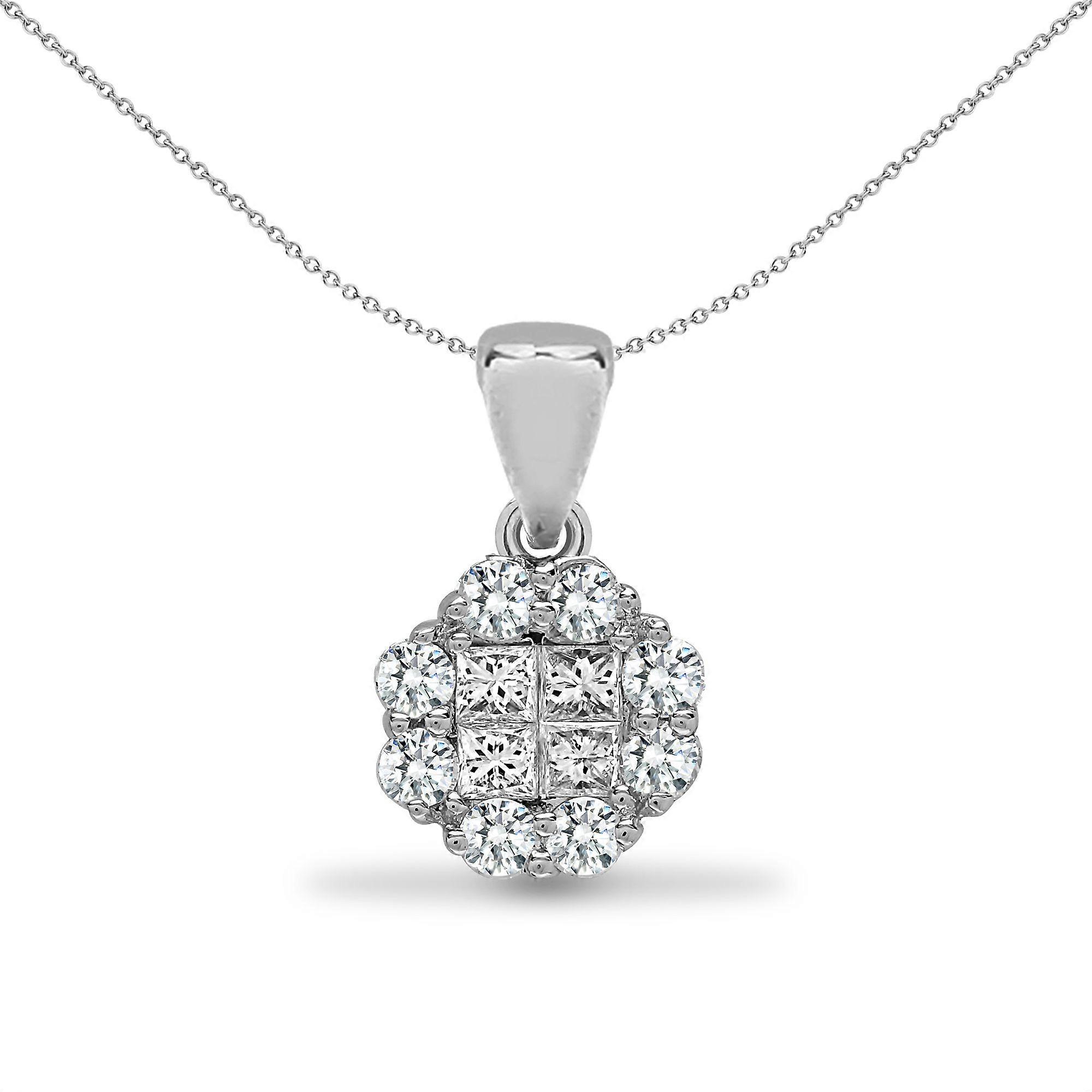 Jewelco London Solid 18ct White Gold Pave Set Princess G SI1 0.3ct Diamond Clover Window Cluster Pendant