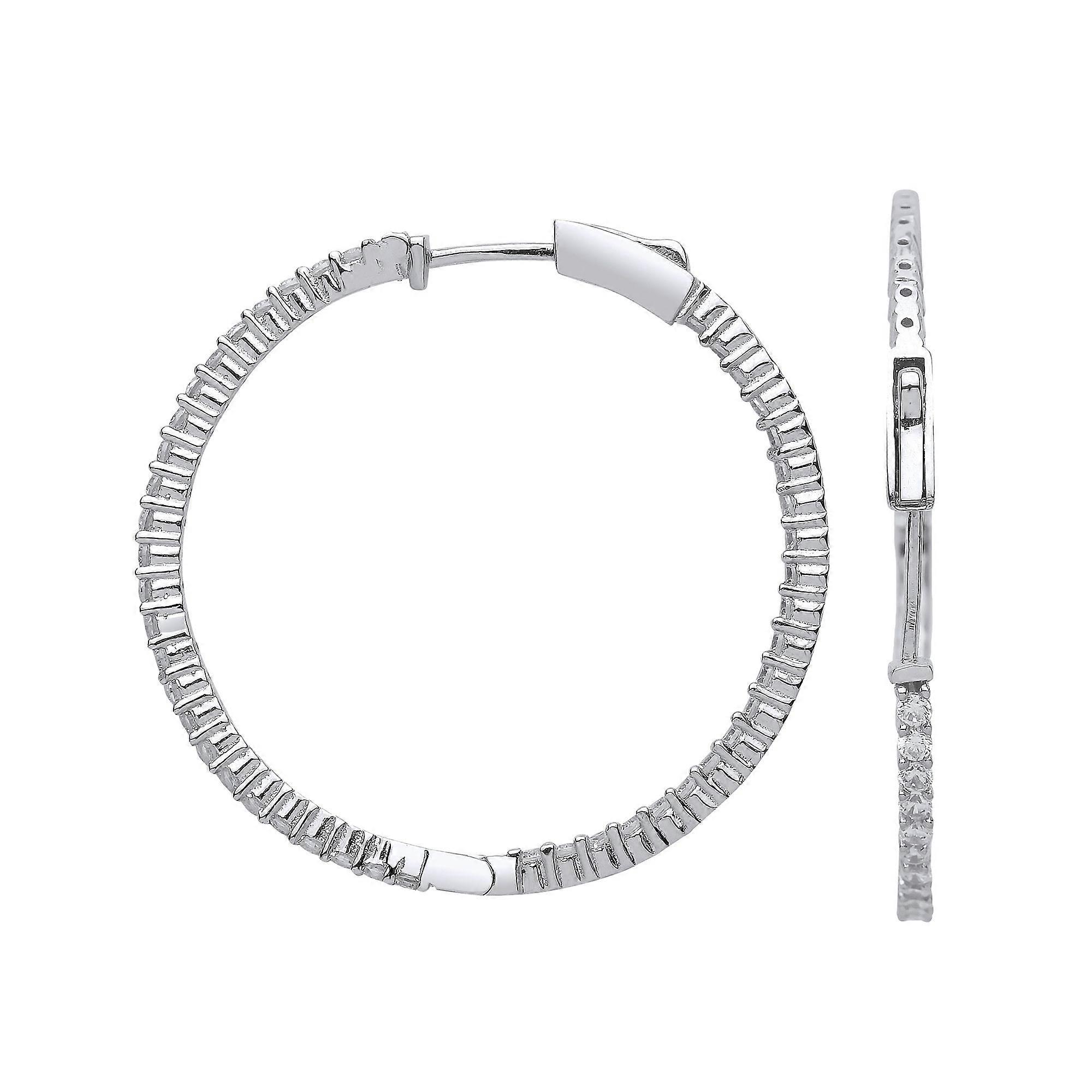 Jewelco London Ladies Sterling Silver Cubic zirconia Inside Outside Eternity Hoop Earrings 36mm