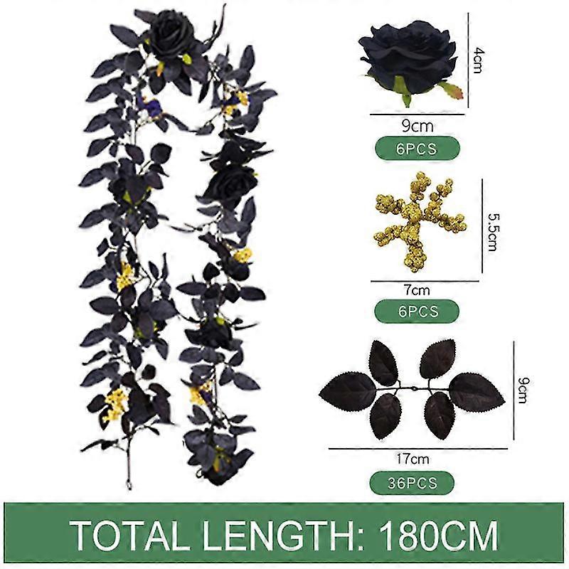 Jianghuo 1/2Pcs Halloween Artificial Garland Hanging Black Maple Leaf Autumn Leaves Rattan Wreath Halloween Horror Theme Party Home Decor