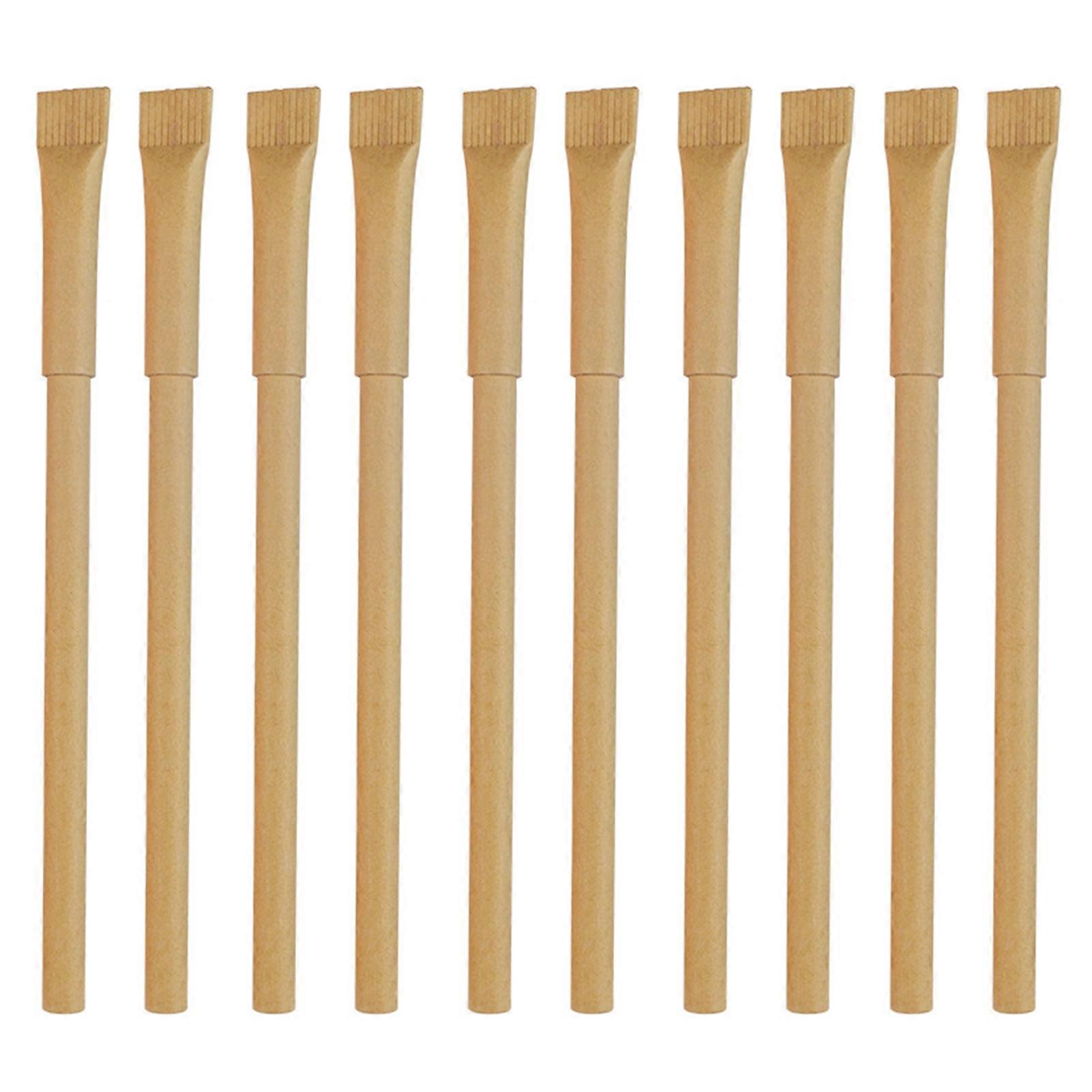 JIKAIX 10Pcs 0.7mm Ballpoint Pen Natural Kraft Paper Smooth Writing Pull Cover Assorted Colors Eco-friendly Advertising Pen School Supplies