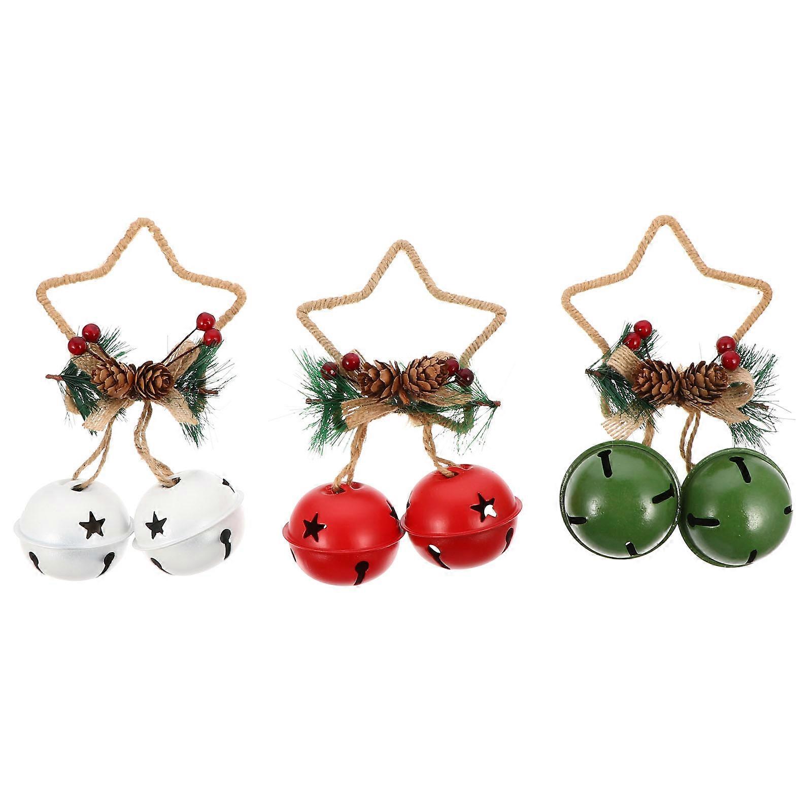 Jingle Bell Christmas Tree Hanging Ornament Star Shaped Bell Home Decor 17x9cm Iron Jute Rope 2Set