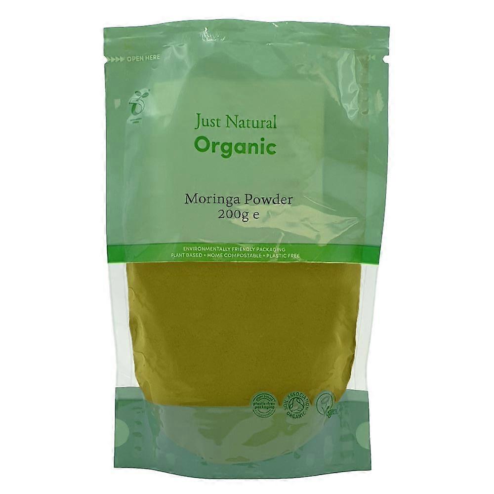 Experience the exceptional quality of Just Natural Organic Moringa Powder 200g, crafted from premium organic moringa leaves to support your wellness journey. Sourced from carefully selected ingredients, this nutrient-rich powder offers a natural boost of vitamins, minerals, and antioxidants to help enhance your daily nutrition.Our moringa powder is thoroughly inspected and packed in a state-of-the-art facility that meets rigorous standards for hygiene and quality. Certified by the British Retail Consortium for packaging control and cleanliness, and Soil Association certified for organic packing, we ensure that every pack maintains the highest level of purity and freshness.This versatile organic moringa powder is ideal for adding to smoothies, juices, teas, or sprinkled over salads and soups. Its natural, earthy flavor complements a wide range of dishes, making it an excellent addition to your healthy lifestyle. Rich source of essential vitamins and minerals including Vitamin C, Vitamin A, calcium, and iron Supports immune health and overall vitality High in antioxidants that help combat oxidative stress Certified organic and free from artificial additives or preservatives Convenient 200g pack ensures long-lasting supplyIncorporate Just Natural Organic Moringa Powder into your daily routine to enjoy a natural, wholesome supplement that promotes well-being and supports an active lifestyle. Perfect for health-conscious individuals seeking a pure and reliable source of organic nutrition.