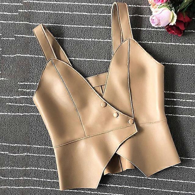 JWL-PU leather waistcoat womenspring and autumnKorean fashioon simple elegant irregular small fragrance slim short waistcoat