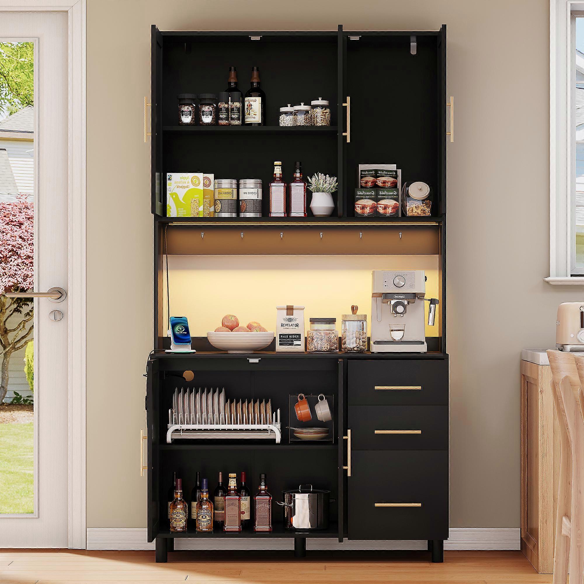 kashemano modern multifunctional sideboard, beige+black , LED lighting , adjustable shelves, it features a rustic style.