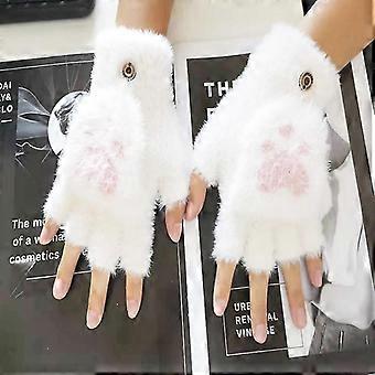Kawaii Women Cat Gloves Fashion Girls Cat Claw Paw Plush Mittens Warm Soft Plush Short Fingerless Half Finger Winter Gloves