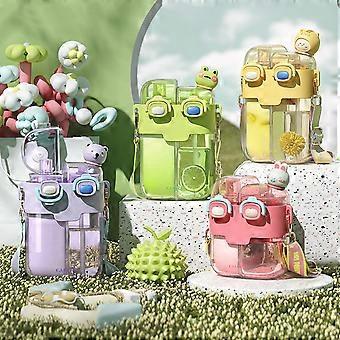 Kawaii Water Bottle Fashion Plastic Double Drinking Water Bottle with Straw Adjustable Strap for Outdoor Sports Travel Lavender Purple 780ml
