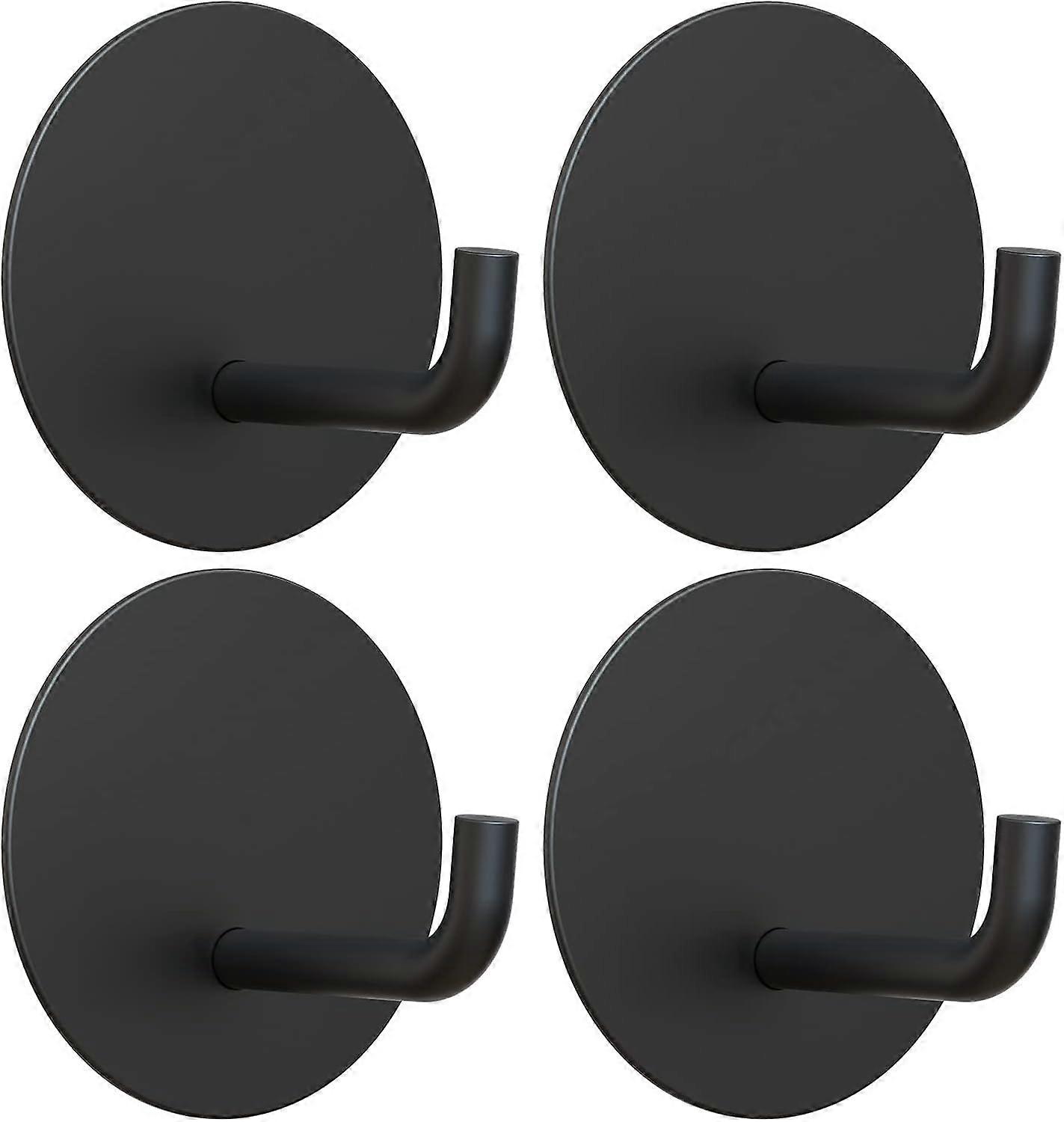Black Round Self-Adhesive Wall Hooks, Waterproof and Durable Stainless Steel for Bathroom Kitchen Living Room Camper - 4 Pieces-14989