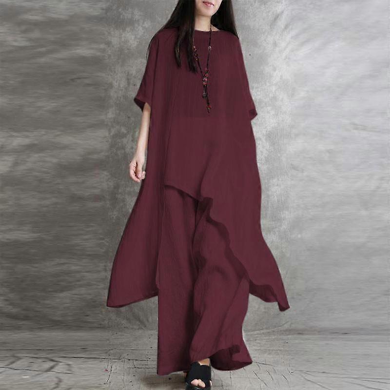 Korean Women's Cotton Linen 2-Piece Casual Sportswear Set with Short Sleeve O-neck Top and Trousers, 2024 Collection