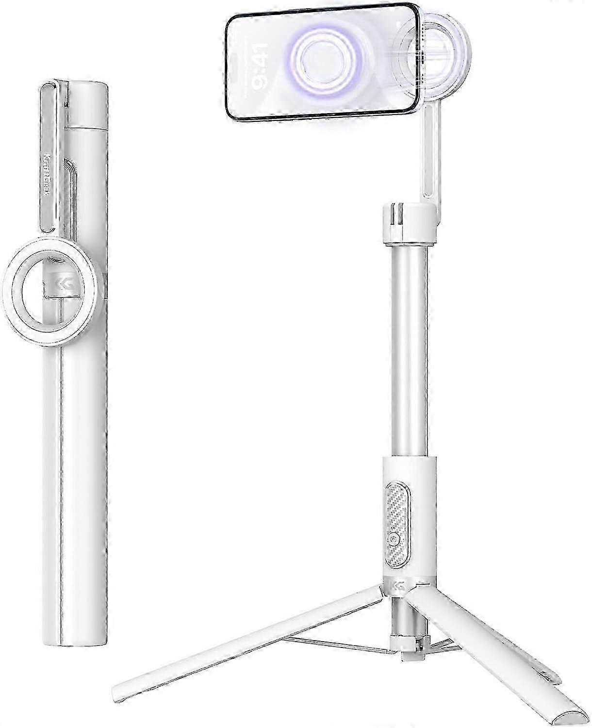 Adjustable and Rotatable: The MagSafe tripod mount can be adjusted up to 210 vertically and allows 360 rotation of the phone, providing flexibility for different shooting angles; This makes it ideal for capturing diverse perspectives in any scenarioVersatile and Extendable: The seven-section aluminum rod extends up to 64.2 inches in tripod mode, catering to various shooting needs; From desk setups to outdoor photography, this phone tripod stand is versatile and reliablePortable and Lightweight: Weighing only 13 oz and folding down to a compact 12 inches, this MagSafe selfie stick is perfect for travel and outdoor adventures; Its collapsible design makes it easy to carry, ensuring you never miss a moment on your journeysWide Compatibility: Designed for iPhone 12/13/14/15/16 Pro Max Mini and official MagSafe cases, this iPhone tripod mount attaches directly without the need for metal plates; For Android phones and non-MagSafe cases, the included metal rings provide secure attachment, ensuring universal compatibilityDetachable Bluetooth Remote: Equipped with a detachable Bluetooth remote, this phone tripod allows you to take photos conveniently from a distance; Perfect for group photos, solo shots, and capturing various scenes effortlessly Note: Due to the light and screen setting difference, the item's color may be slightly different from the pictures. Please allow slight dimension difference due to different manual measurement.