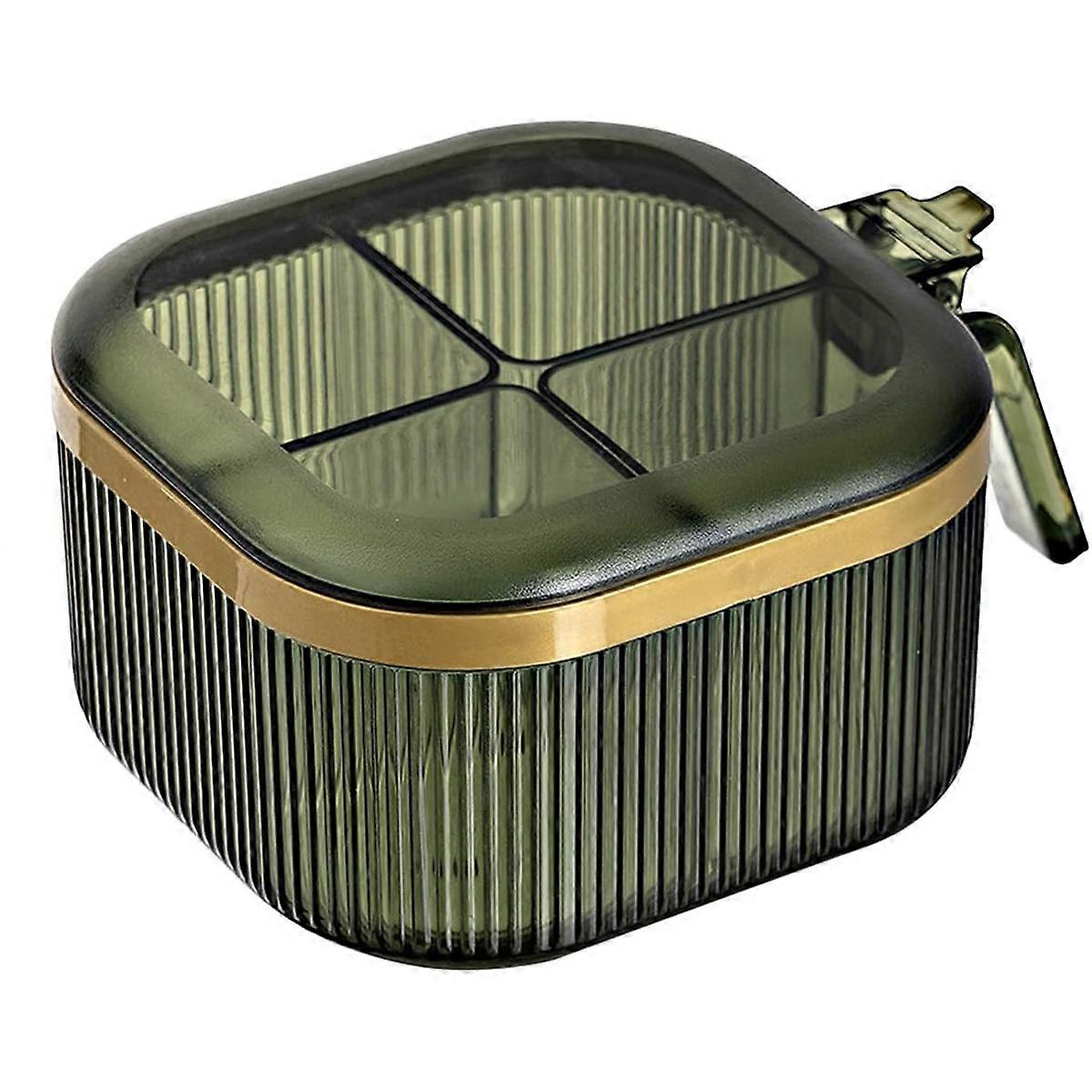 KXJ-Seasoning Box 4 Compartments Seasoning Pot with Transparent Lid and Spoons,Detachable Design,Kitchen Seasoning Box Sugar Bowl Salt Storage Jar Pep