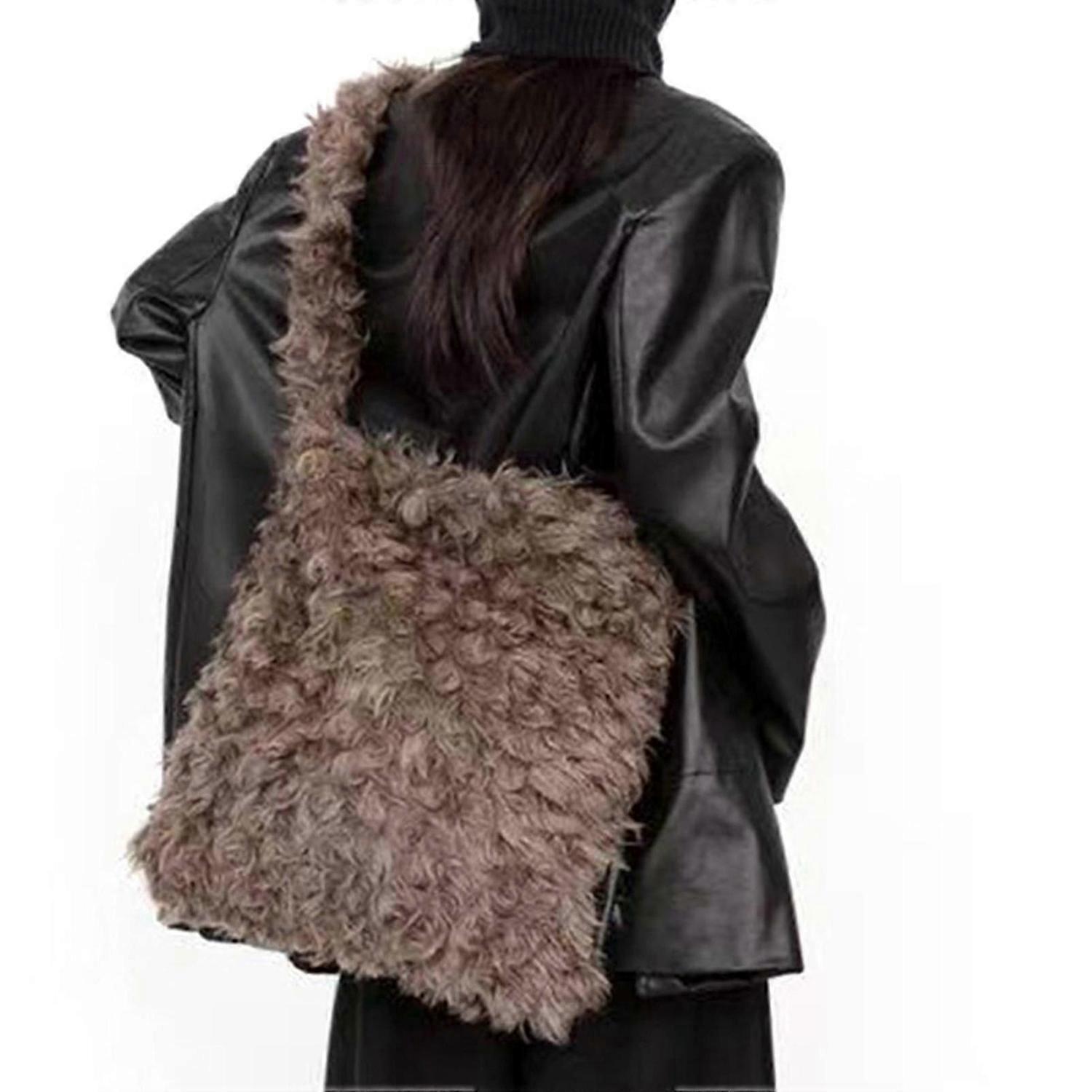 Ladies Fluffy Hobo-Bag Retro Casual Shopping Bag for Everyday Life