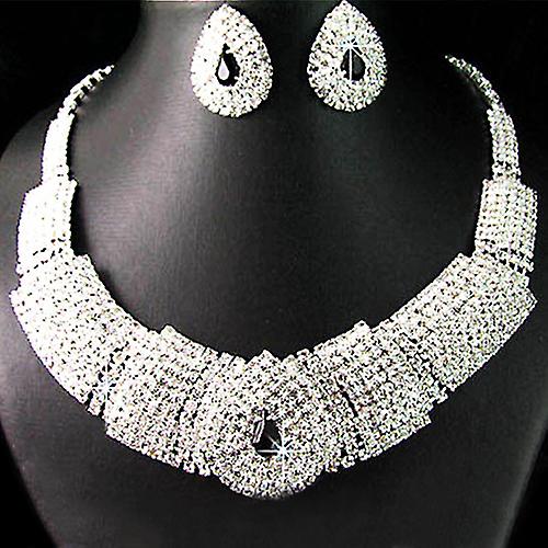 Women Lady Rhinestone Collar Rhinestone Statement Bib Necklace Earrings Set