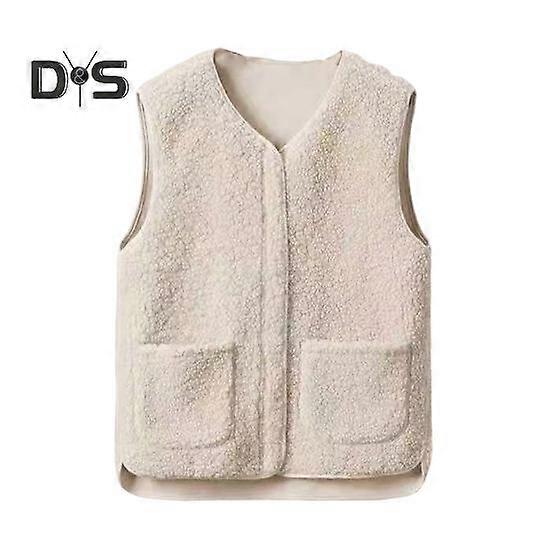 Lady Vest Jacket with Dual Pockets Zip-up Fleece Sleeveless Cardigan Plus Size Loose Round Neck Waistcoat Daily School Travel Vest Coat