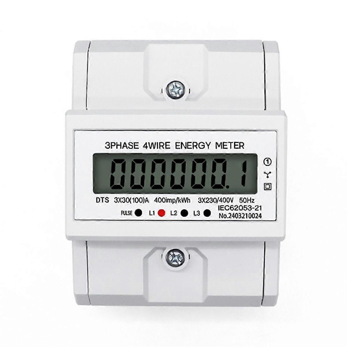 LCD AC Din Rail 230V 3 Phase 4 Wire Energy Meter Power Consumption Monitor KWh Meter Wattmeter 3x30(100A) 50/60HZ