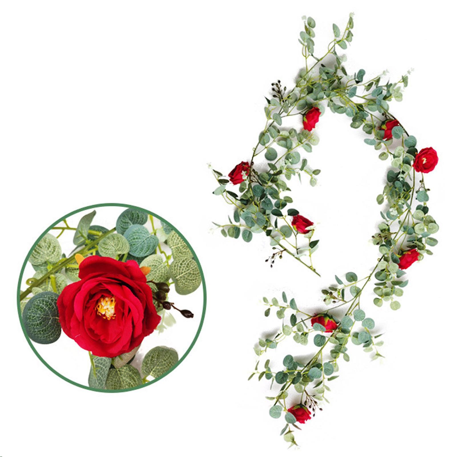 LCP 1.85m Artificial Rose Eucalyptus Vine Leaves Garland Photo Props Hanging Decor