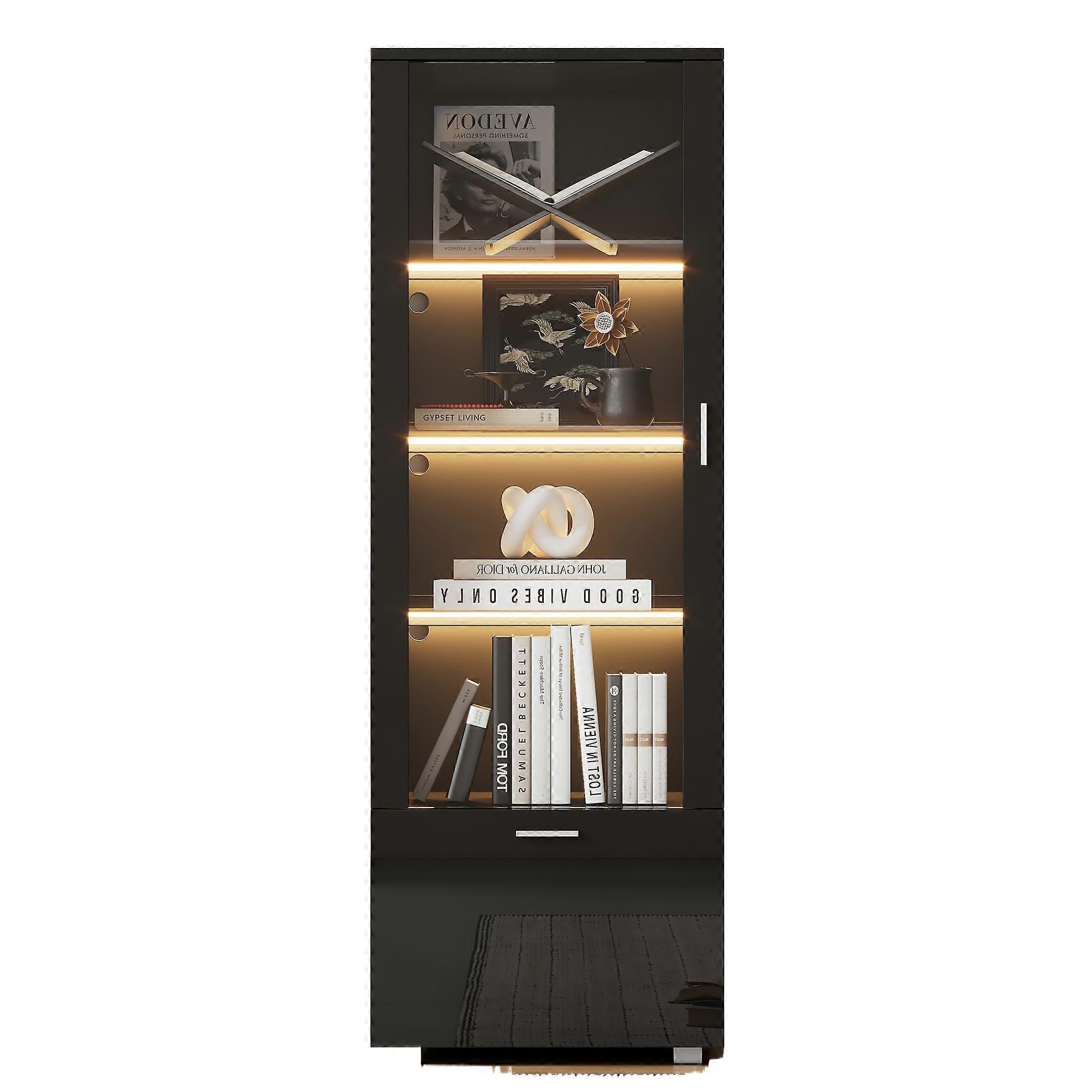 Black High Gloss Glass Display Cabinet LED Lighting 3 Shelves