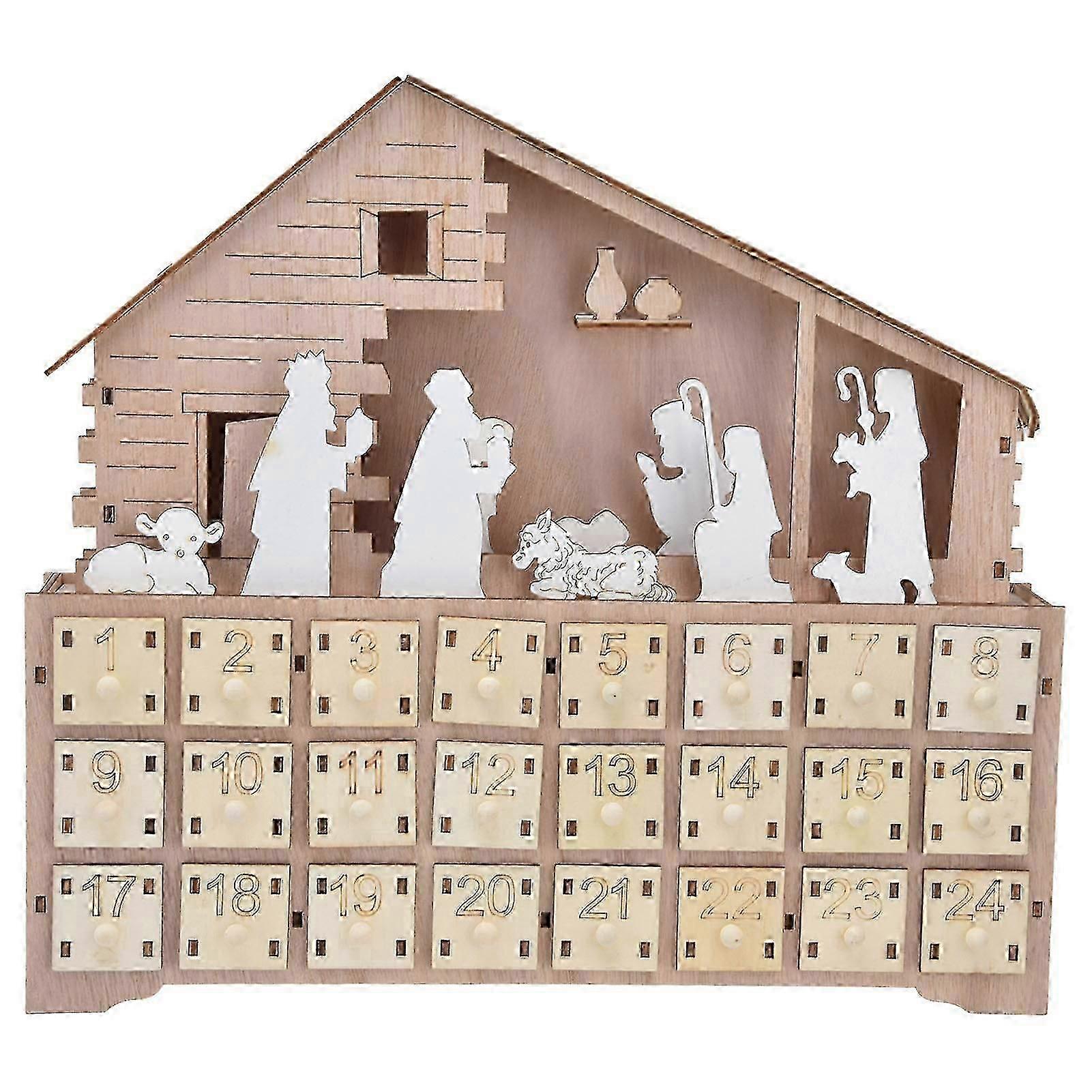 LED Light Calendar Wooden Desk Calendar Christmas Advent Calendar Ornament for Holiday Decoration