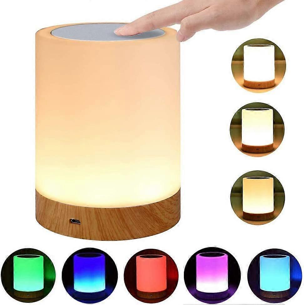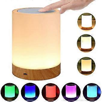 LED Bedside Lamp Battery Touch Sensor Table Lamp Childrens Night Light Made of Wood with 256 RGB
