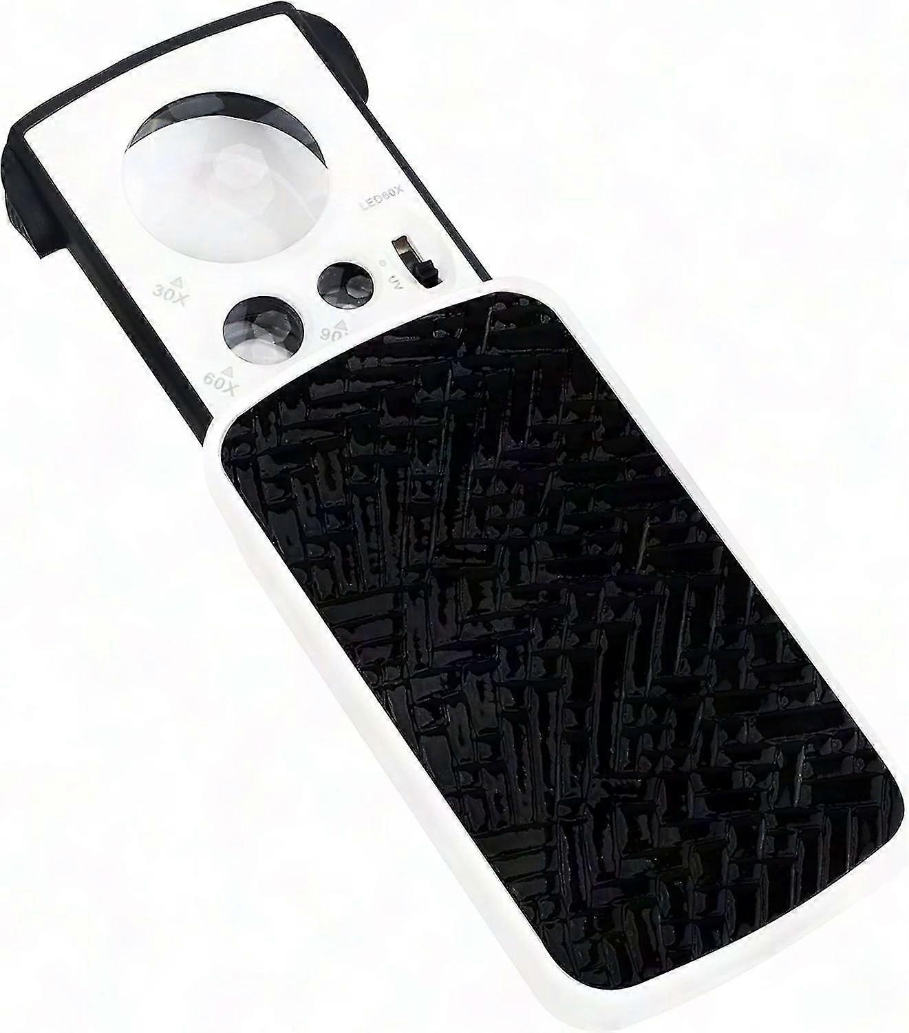 LED Illuminated Handheld Magnifier - 30X 60X 90X Magnifying Glass for Reading & Jewelry - Folding Pocket Magnifier for Seniors - Black