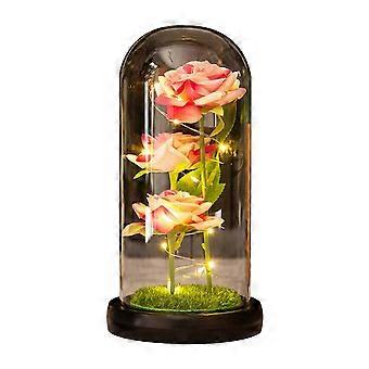 LED Eternal Rose in Glass Dome with Wooden Base, Pink Flower, Perfect for Christmas and Mother's Day Gifts