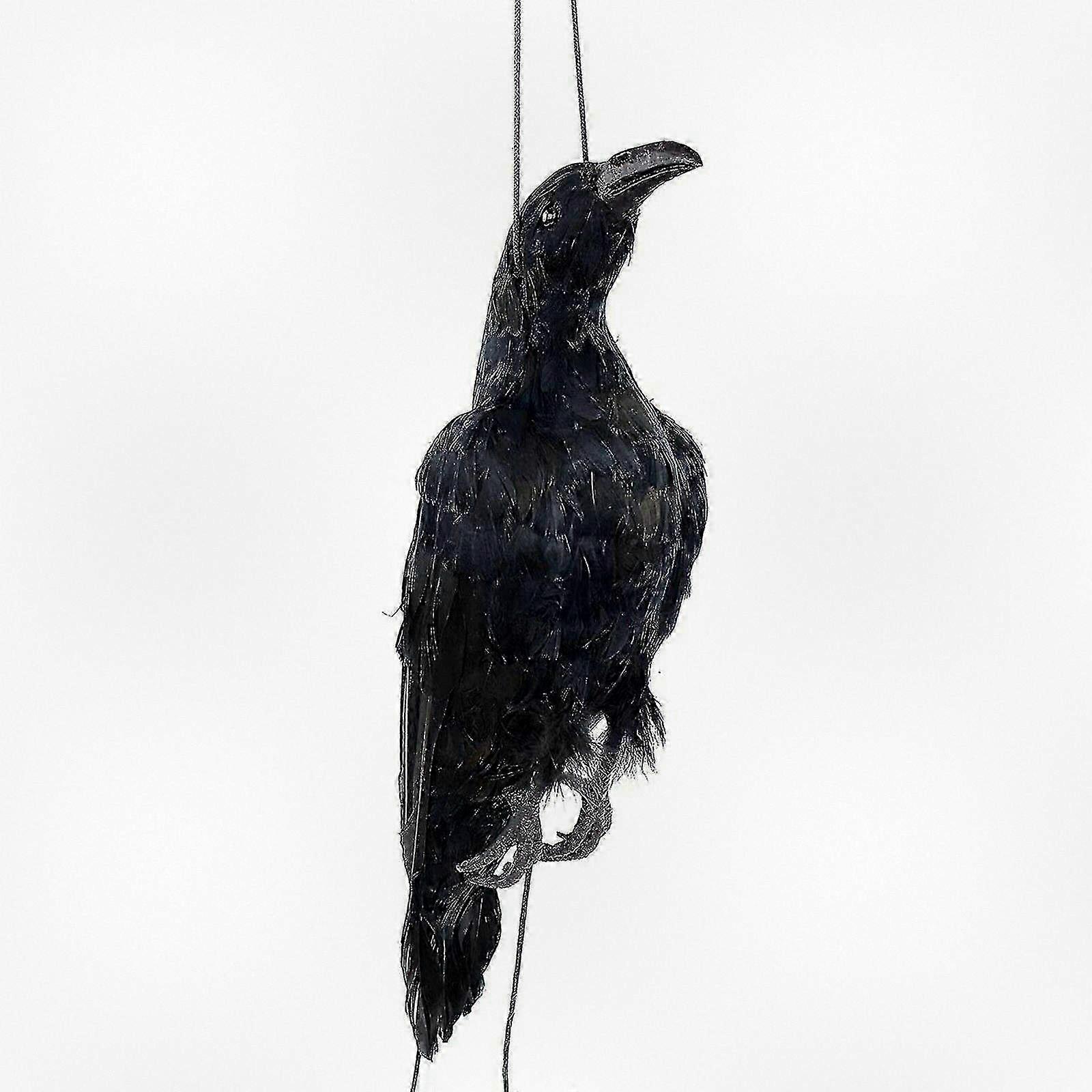 Lifelike Hanging Crow Decoy Large Black Feathered Bird Scarecrow for Outdoor Use