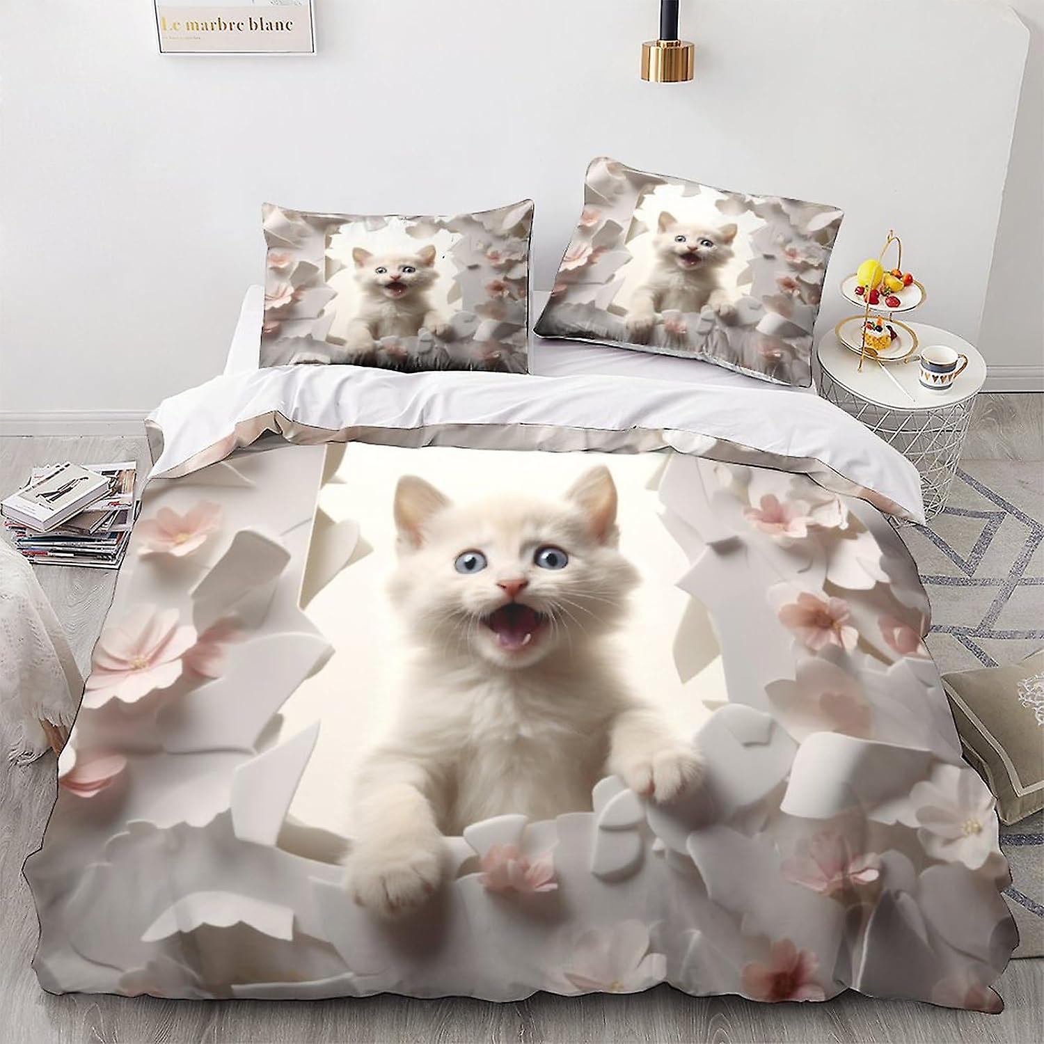LikeEj 3 Pieces Cat Duvet Cover with Pillowcases,cute Kitty Print Bedding Set with Zipper Closure,animal Quilt Cover Double