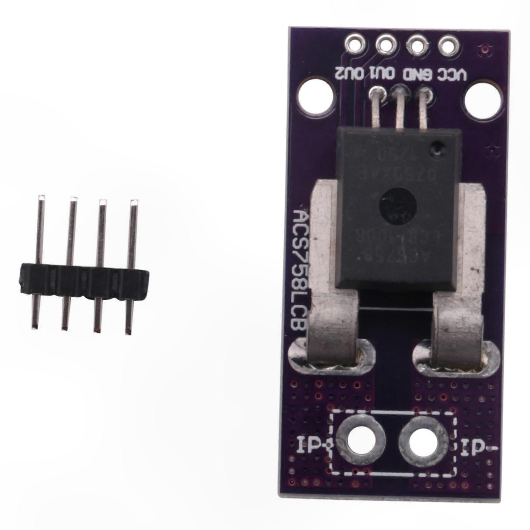 The ACS758 consists of a precision, low-offset linear Hall sensor circuit with a copper current path integrated into the package. The current flowing through the copper path generates a magnetic field, which is sensed by the Hall IC and converted into a proportional voltage output. Device accuracy is enhanced by positioning the magnetic signal close to the Hall sensor. The output voltage is highly accurate and stable, provided by a chopper-stabilized, low-offset BICMOS IC factory-programmed for precision. The internal resistance of the current conduction path is typically 100 µΩ, enabling low power loss. The copper conductor is designed to withstand high overcurrent conditions. The current path terminals and sensor pins (pins 1 to 3) are electrically isolated, allowing use in applications requiring galvanic isolation without external insulators or complex insulation methods. The ACS758 is fully calibrated prior to shipment. It is a lead-free product; all leads are plated with 100% matte tin, and no lead is present in the package. Operating voltage: 3 V – 5 V Quiescent output voltage: VCC / 2 Supply current (max): 135 mA Storage temperature range: -65 °C to +165 °C Maximum output current (VOUT to GND): 3 mA Bandwidth: 120 kHz Dimensions: 55 mm × 21 mm × 15 mm Housing material: ABS Package contents: 1 × ACS758 Current Sensor Module Note: Color may vary slightly due to lighting and screen settings. Measurement tolerance: ±1–3 cm.