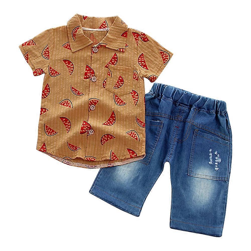 Little Baby Cartoon Pattern Children's Two-Piece Summer Short-Sleeved Suit(Coffee 80)