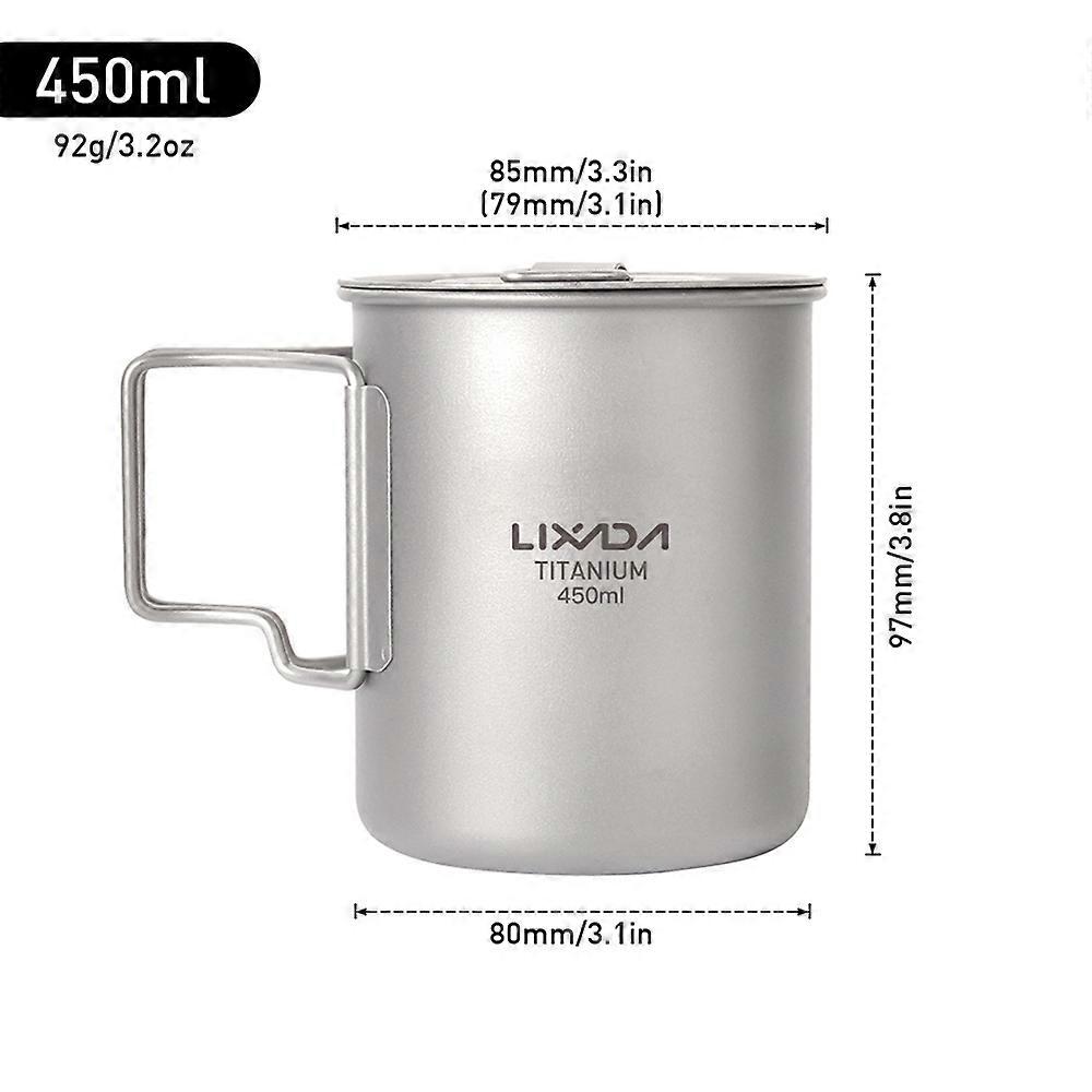 Lixada 450ml/550ml Lightweight Titanium Water Lid Coffee Mug Tea Cup with Foldable Handles for Camping Hiking Backpacking Picnic