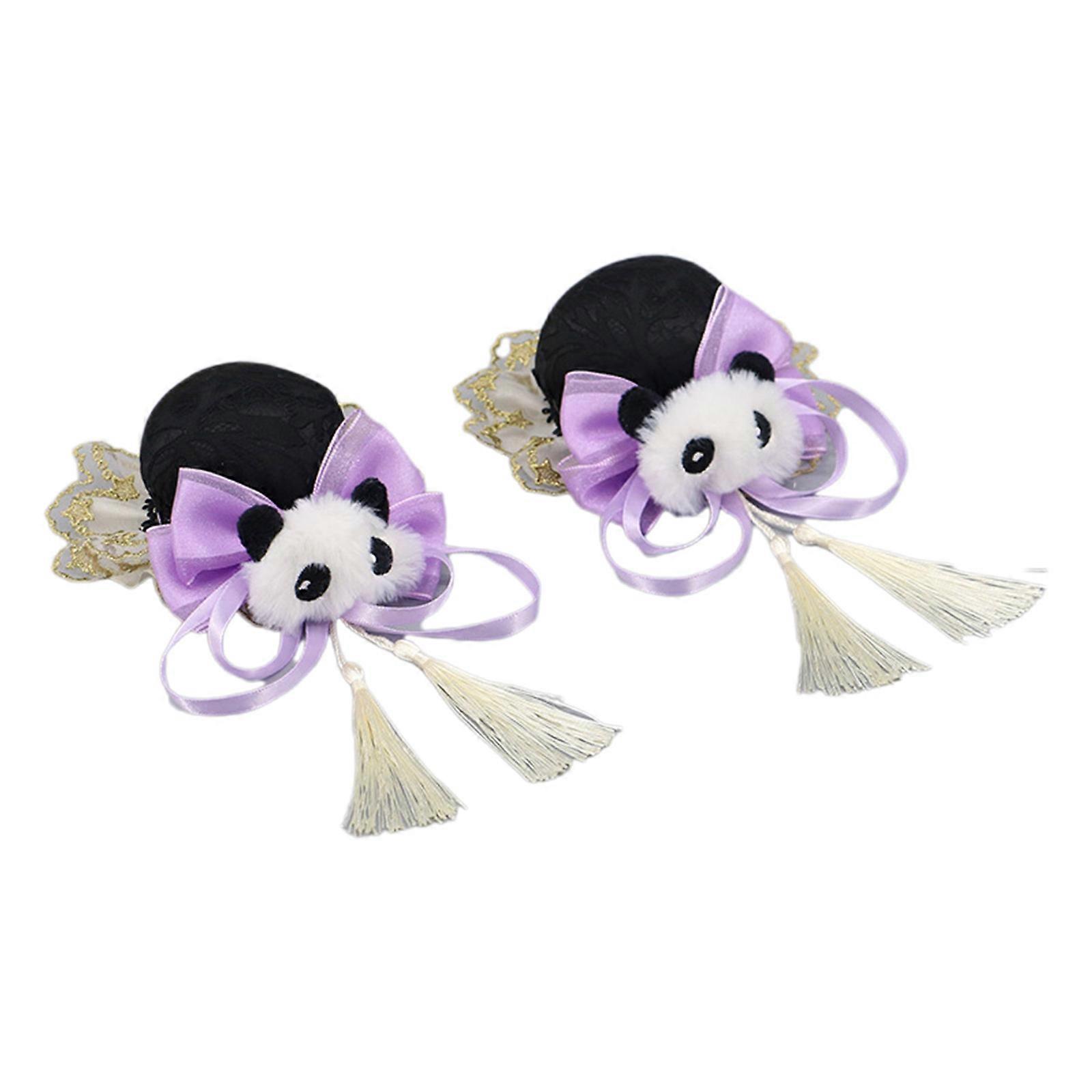 Lolitas Headpiece Cute Hair Accessories Cosplays Hair Clip Plush Panda Bowknot Decors Sweet Hairpins 4x12 Inch Purple