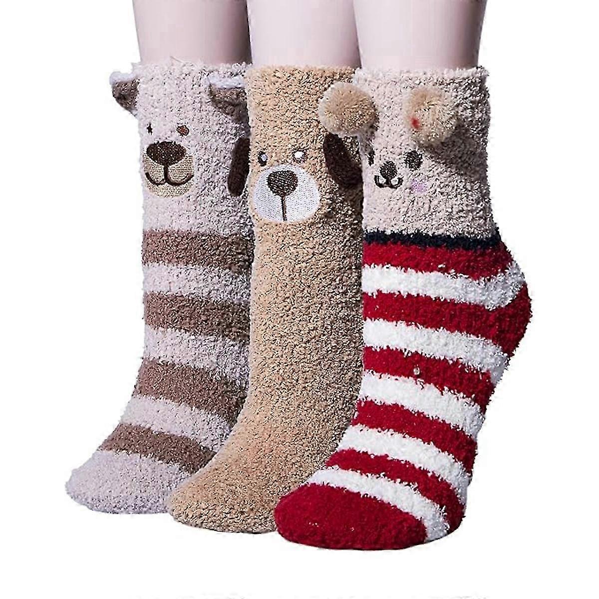 Loritta 3 Pairs Womens Fuzzy Winter Warm Fluffy Soft Slipper Home Sleeping Cute Animal Socks