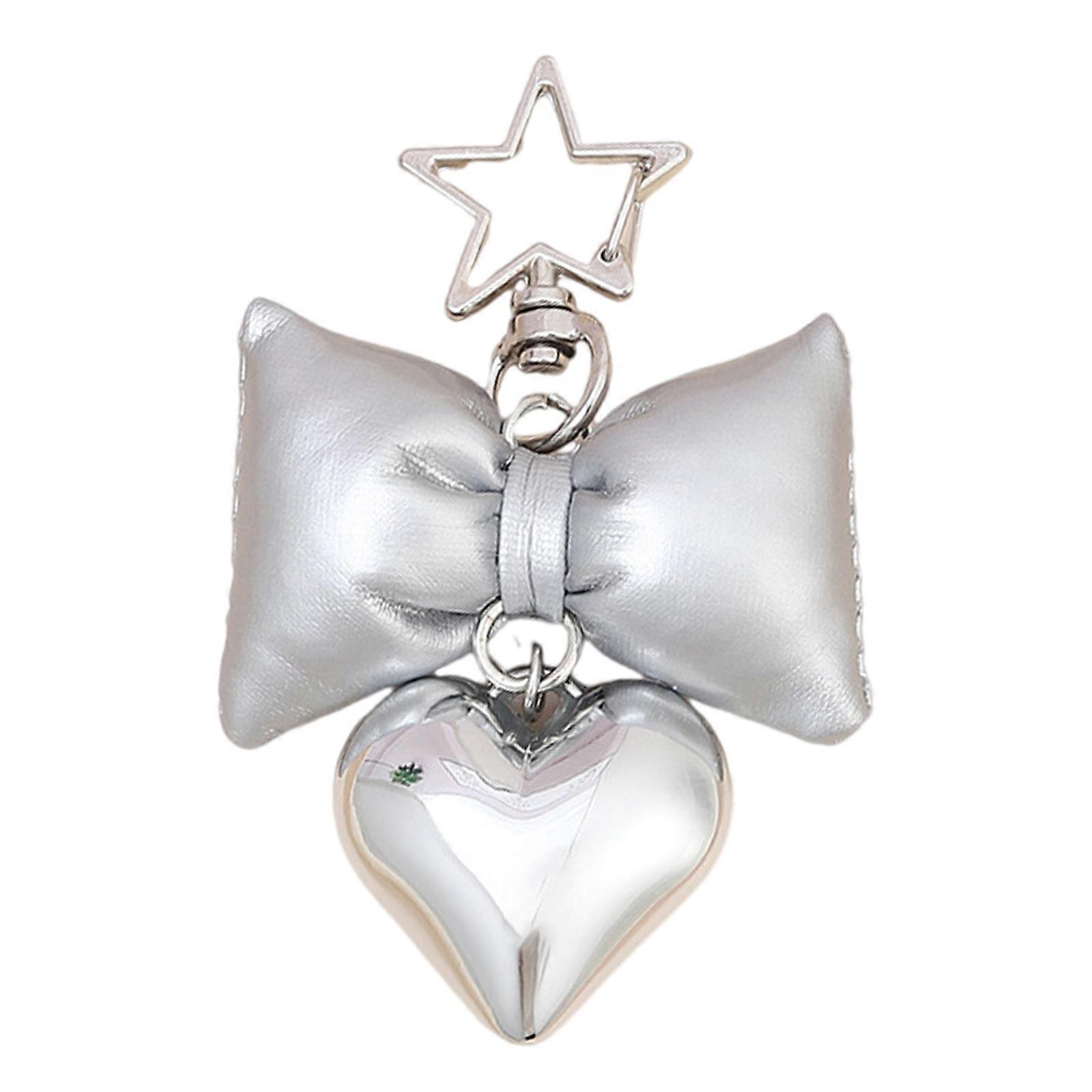Lovely PU Leather Bowknot Heart Keychain Pendant Bag Phone Pendant Women Backpack Handbag Charm Lovely Decoration Silver