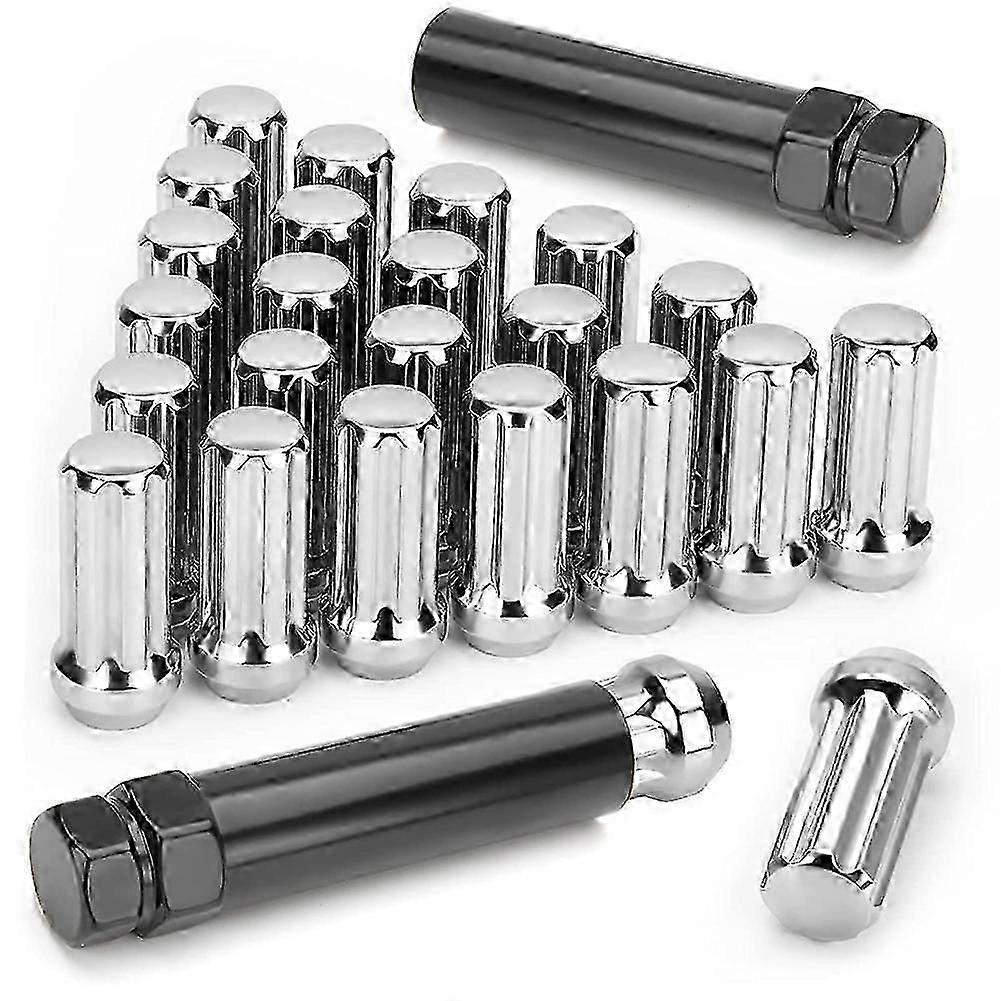 M14X1.5 Wheel Lug Nuts,24 Pieces 14mmx1.5 7 Spline Drive Awl Cone Lug Nuts 2 inch Long Black with 2 Socket Key