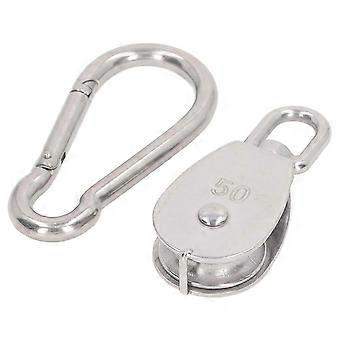 M50 Single Pulley Block 400kg Bearing Stainless Steel Pulley Roller with M12 Spring Snap Hook