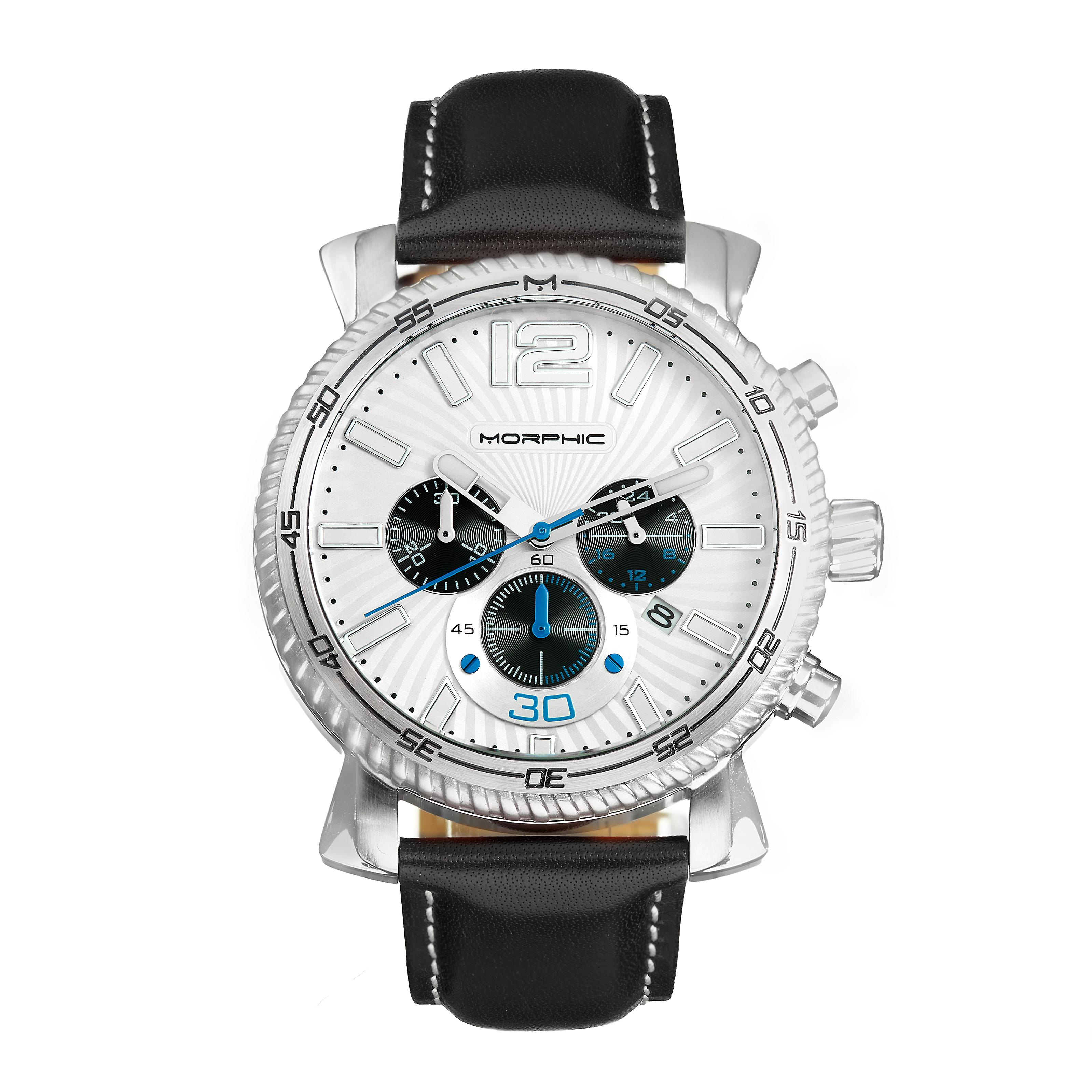 Morphic M89 Series Chronograph Leather-Band Watch w/Date - Black/White
